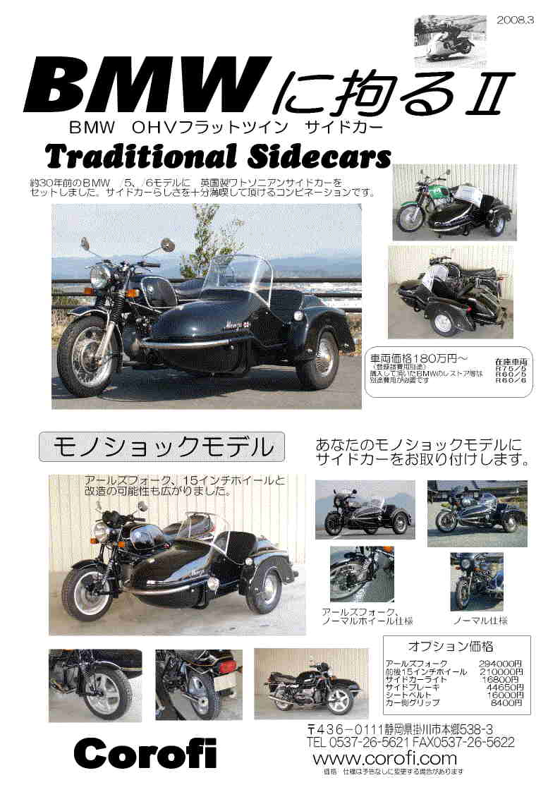 BMW モノショックモデルに英国製ワトソニアンサイドカー、MONZAをセット致しました。
